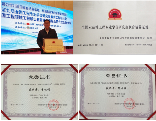 大会总结表彰了近年来全国各高校在专业学位研究生教育中取得的突出成果,在407个工程专业学位培养单位申报的160个研究生联合培养示范基地中评选出“全国示范性工程专业学位研究生联合培养基地”28个、“做出突出贡献工程硕士学位获得者”160名、“工程硕士实习实践优秀成果获得者”34名。我校作为广东省唯一高校获得“全国示范性工程专业学位研究生联合培养基地”,并有2名入选“做出突出贡献工程硕士学位获得者”。我校研究生教育将以此为动力,进一步推动专业学位研究生教育改革,做好研究生联合培养基地建设工作,把我校研究生教育推向更高水平!