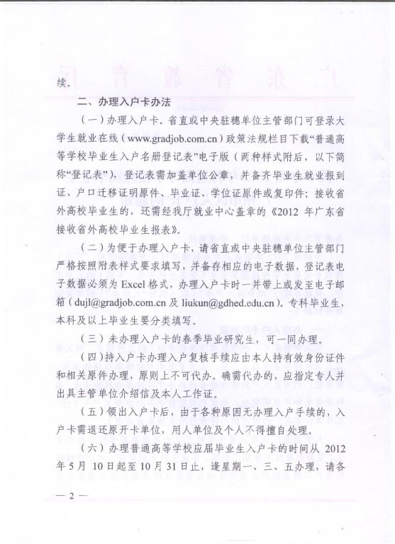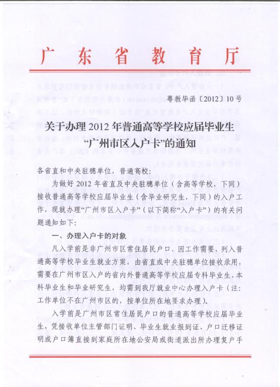 关于办理2012年普通高等学校应届毕业生“广州市区入户卡”的通知