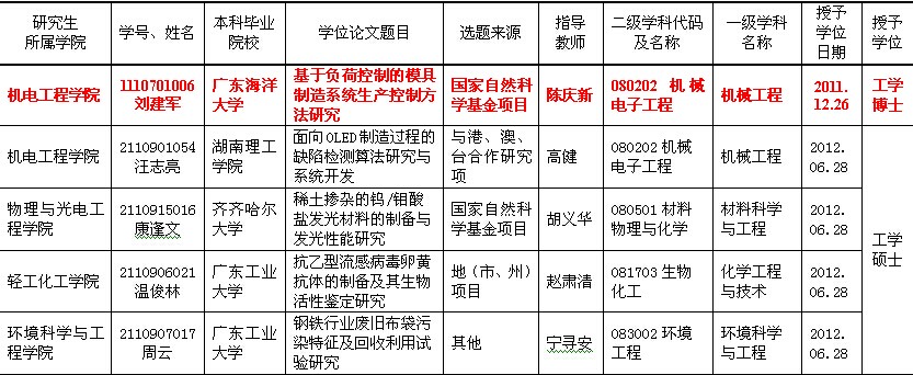 接粤学位函[2014]10号文“关于公布2013年度广东省优秀学位论文名单的通知”,全省共评选出30篇优秀博士学位论文(简称:省优博)、90篇优秀硕士学位论文(简称:省优硕)。2013年度,我校获1篇优博、4篇优硕。名单如下: