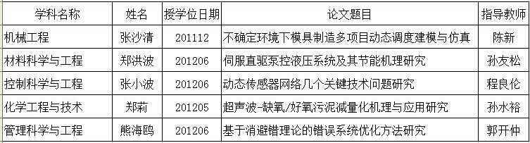2011~2012学年度我校授予博士学位43人。近日,国务院学位办下发了《关于反馈2013年博士学位论文抽检通讯评议结果的通知》(学位办[2014]25号),我校陈新等5名博士生导师指导的5篇博士学位论文抽检全部合格(名单见下表)。